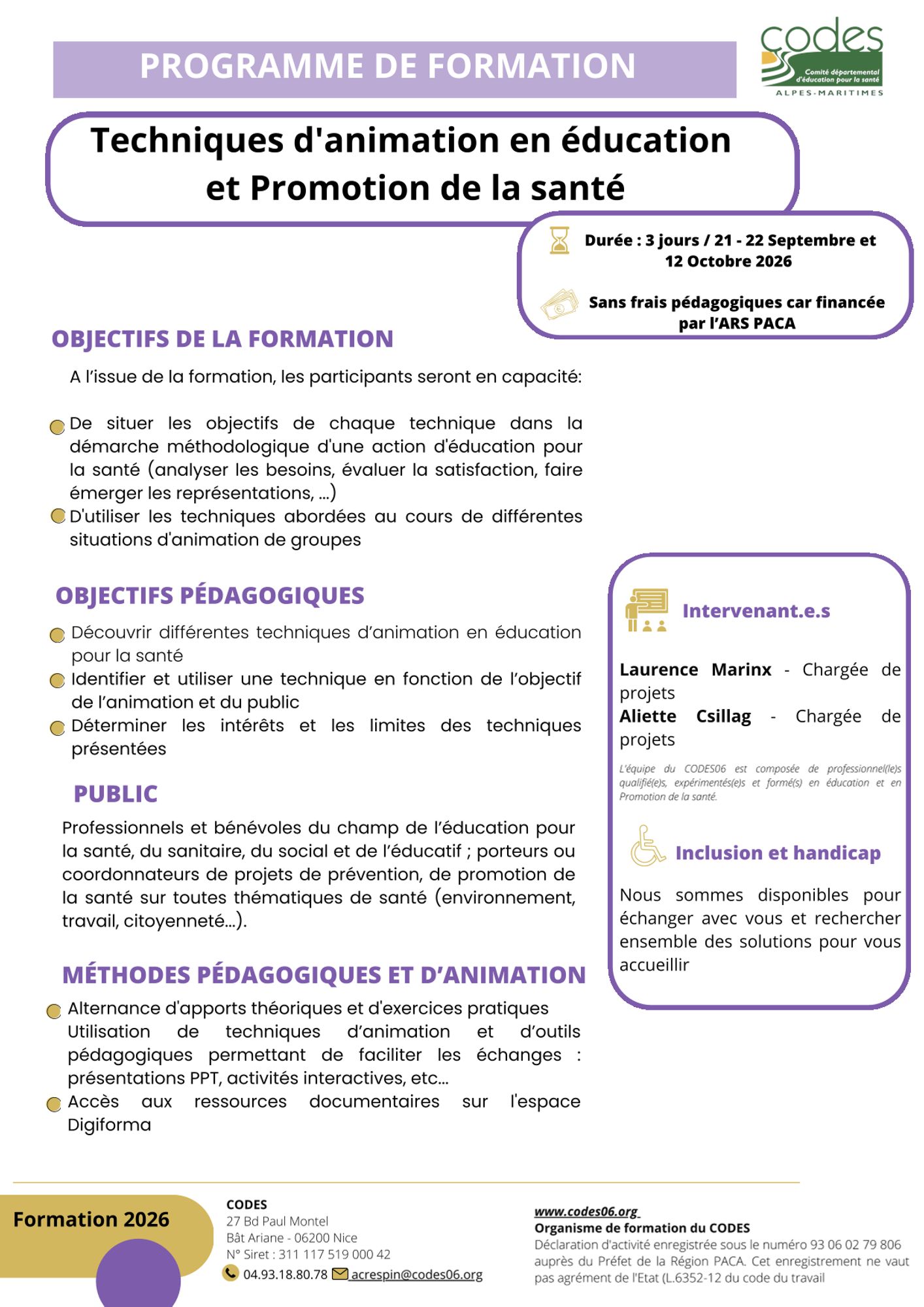 La formation est financée par l’Agence Régionale de santé PACA.