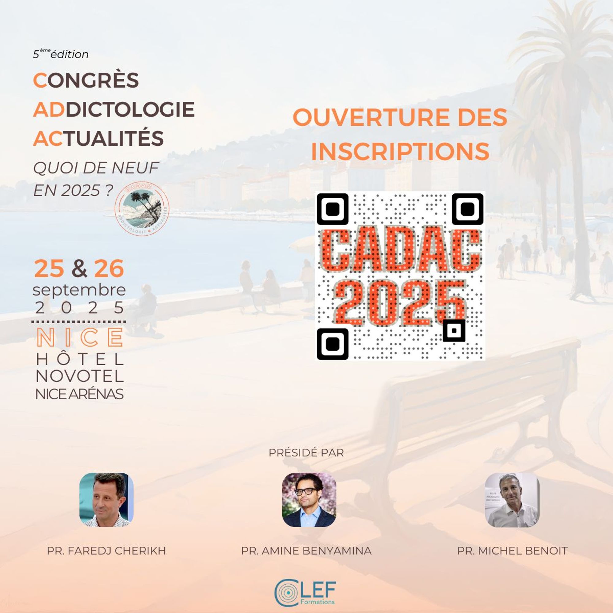 L'ouverture des inscriptions pour la 5ème édition du congrès Addictologie et Actualités : Quoi de neuf en 2025 ? qui se déroulera les 25 et 26 septembre 2025 à l'hôtel Novotel Arénas Aéroport de Nice.