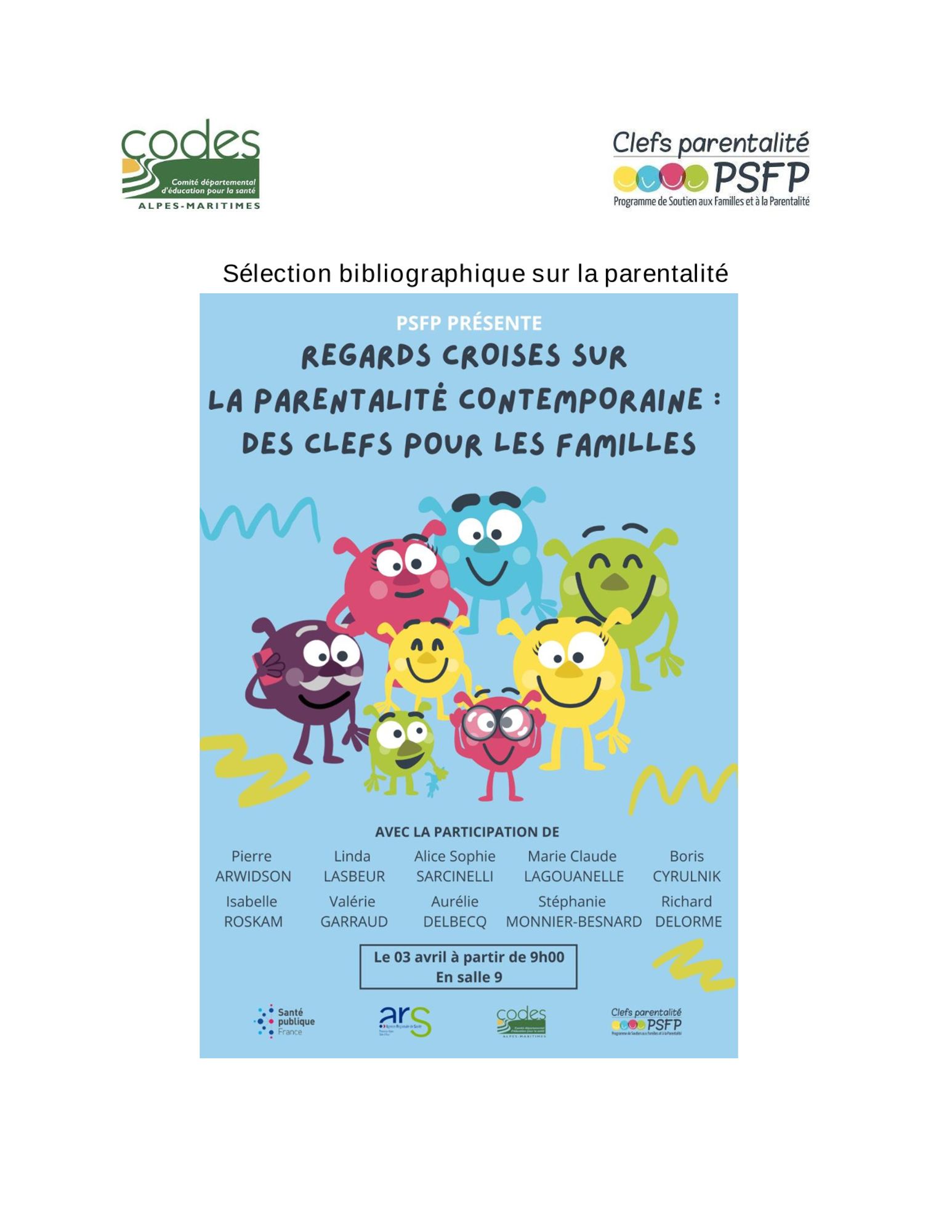 Ce dossier de ressources est complémentaire du colloque proposé par le Comité Départemental d’Education pour la Santé des Alpes Maritimes (Codes 06) avec le soutien de Santé Publique France et le financement de l’Agence Régionale de Santé Provence Alpes Côte d’Azur (ARS PACA). Ce colloque « Regards croisés sur la parentalité contemporaine : Des clefs pour les familles » a été organisé le 03 avril 2025 à Nice.