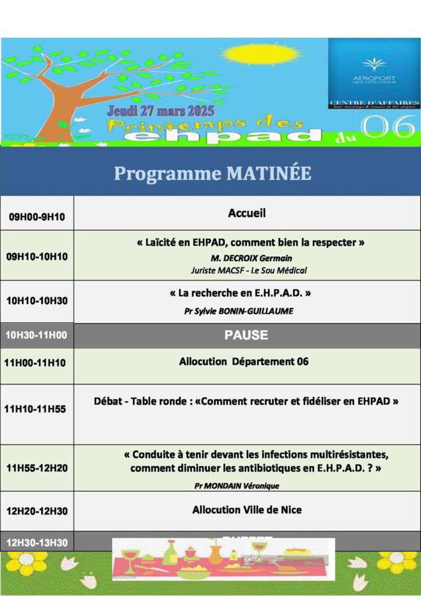 Le Printemps des EHPAD du 06 se tiendra le jeudi 27 mars 2025 de 9 H à 17 H au Centre d’Affaires du Terminal 1 de l’Aéroport Nice Côte d’Azur.
