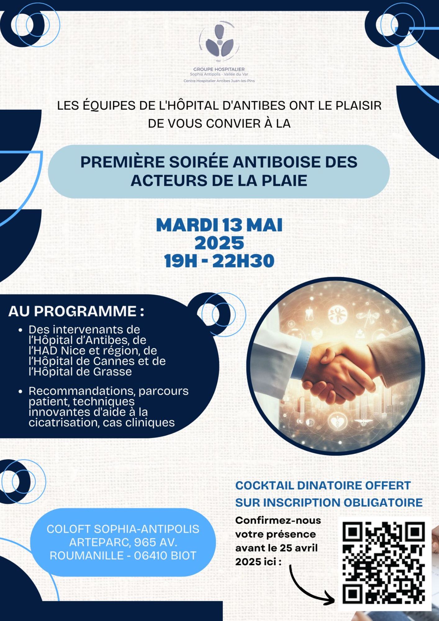 C’est pourquoi nous avons le plaisir de vous inviter à la Première Soirée Antiboise des Acteurs de la Plaie avec pour premier thème directeur : les plaies du pied diabétique, pour sensibiliser, former et agir ensemble sur ce sujet