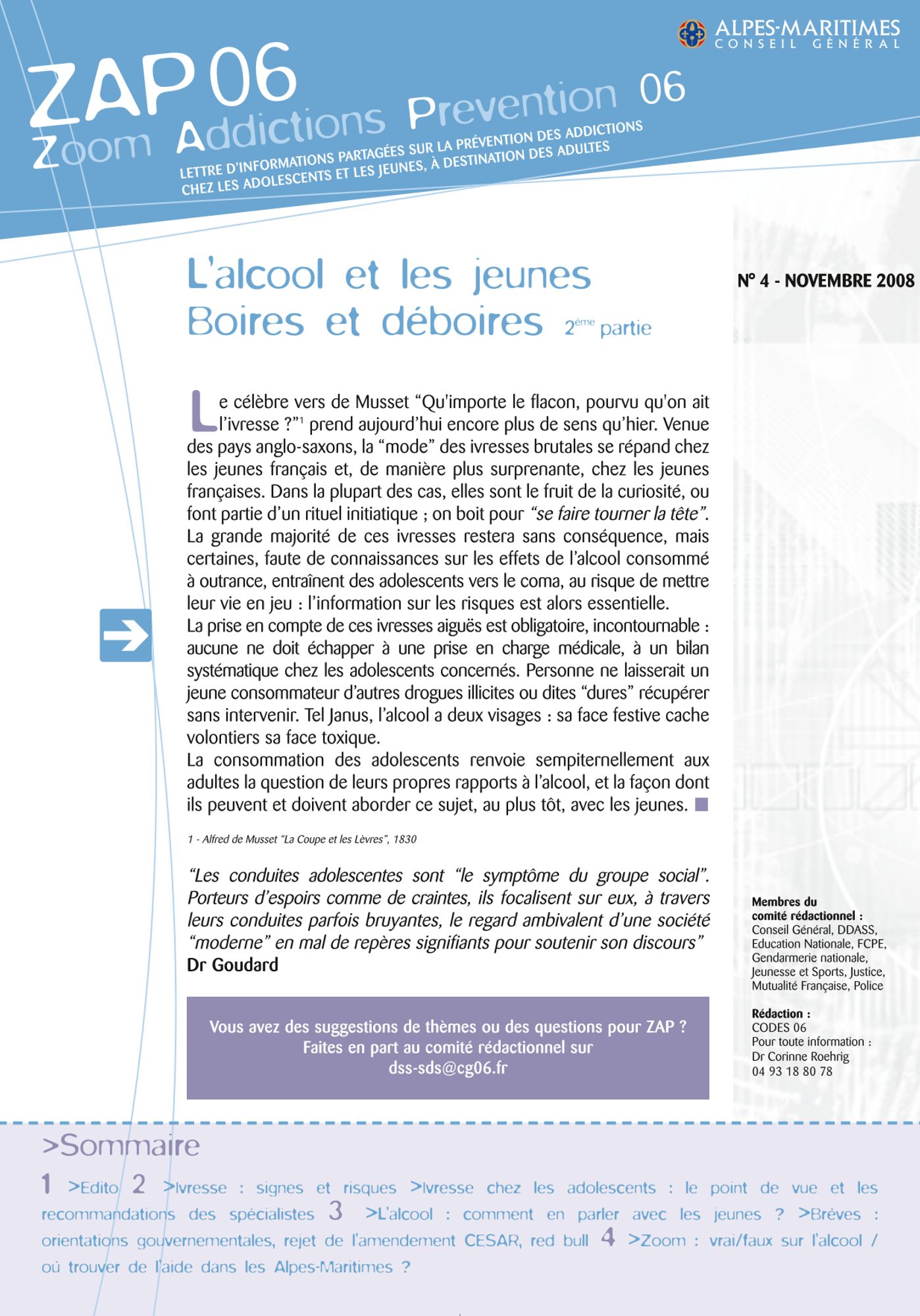 n°4 - novembre 2008 - L'alcool et les jeunes Boires et déboires, 2ème partie n°4 - novembre 2008 (437.1 Ko)