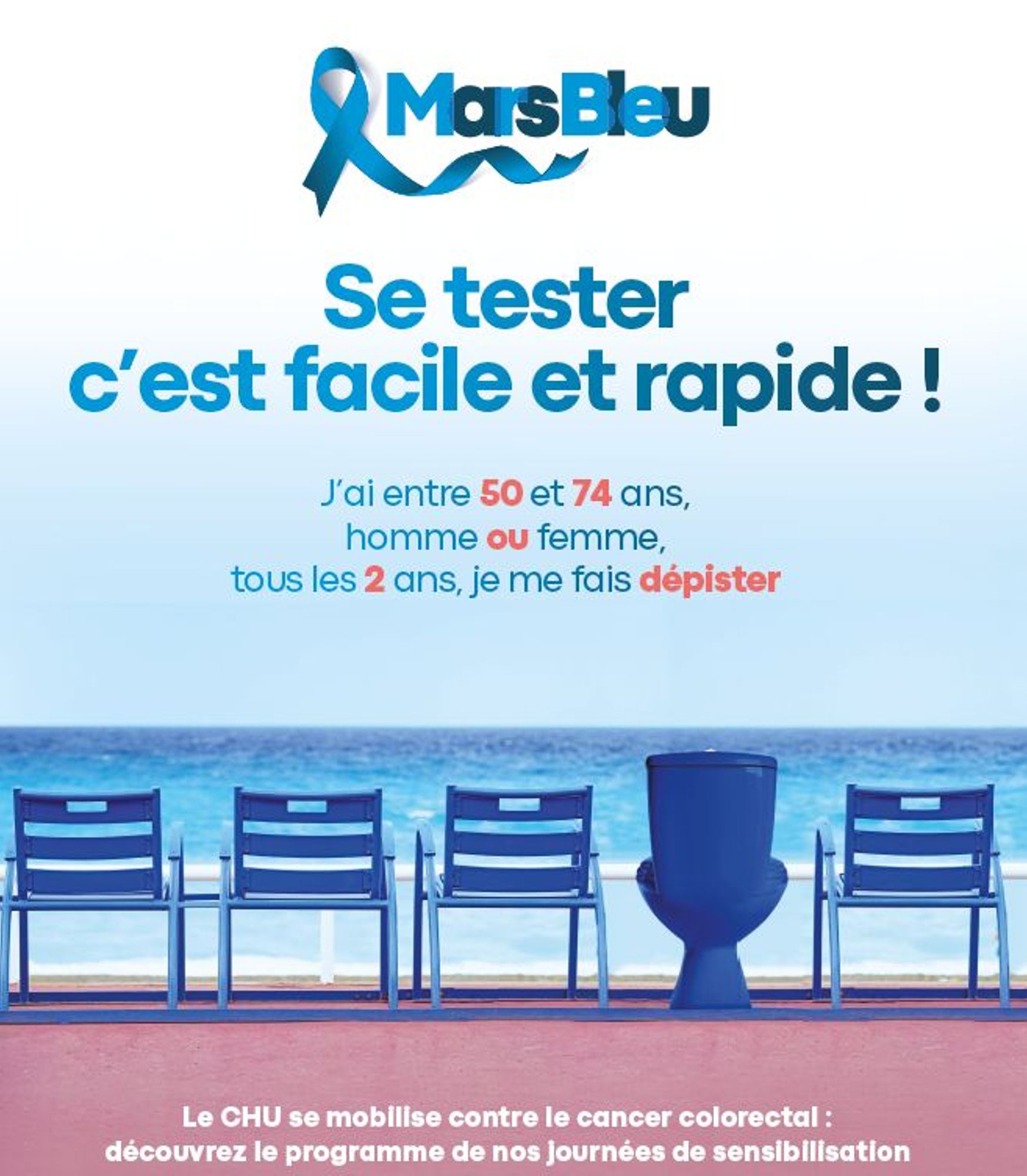 Pour sensibiliser à l'importance du dépistage, le CHU de Nice se mobilise tout au long de MARS BLEU, mois de la prévention contre le cancer colorectal.