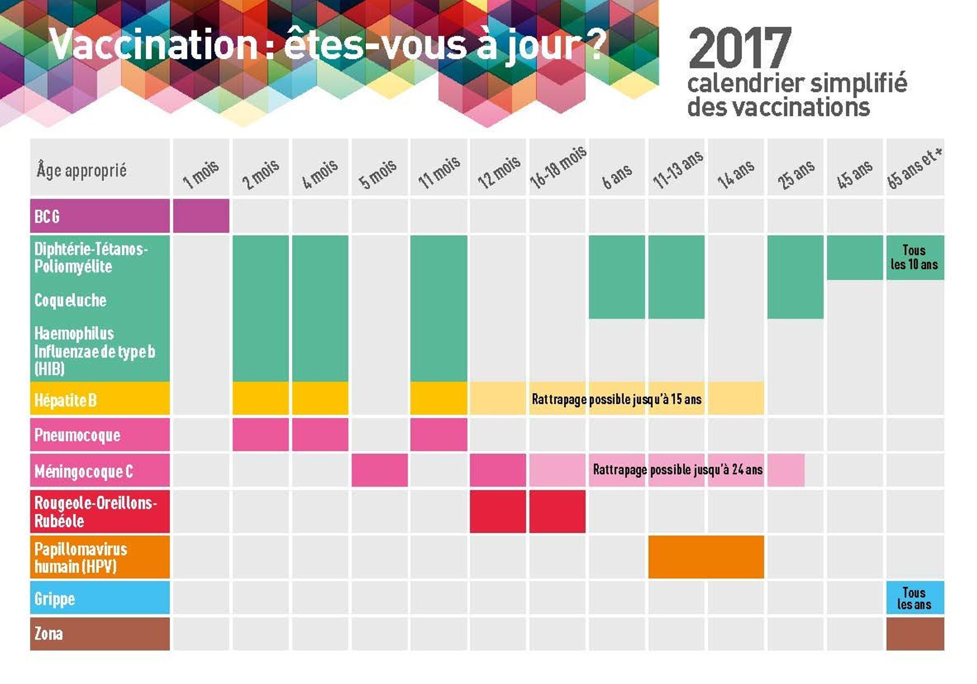 Carte postale du calendrier simplifié des vaccinations 2017 - Vaccination, êtes-vous à jour?