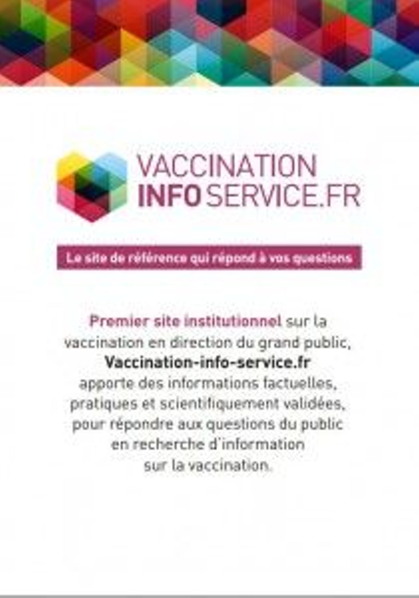 Le site vaccination info-service.fr est un site internet de Santé publique France qui regroupe les informations générales et pratiques sur la vaccination. Ce dépliant de 4 pages présente les contenus du site.