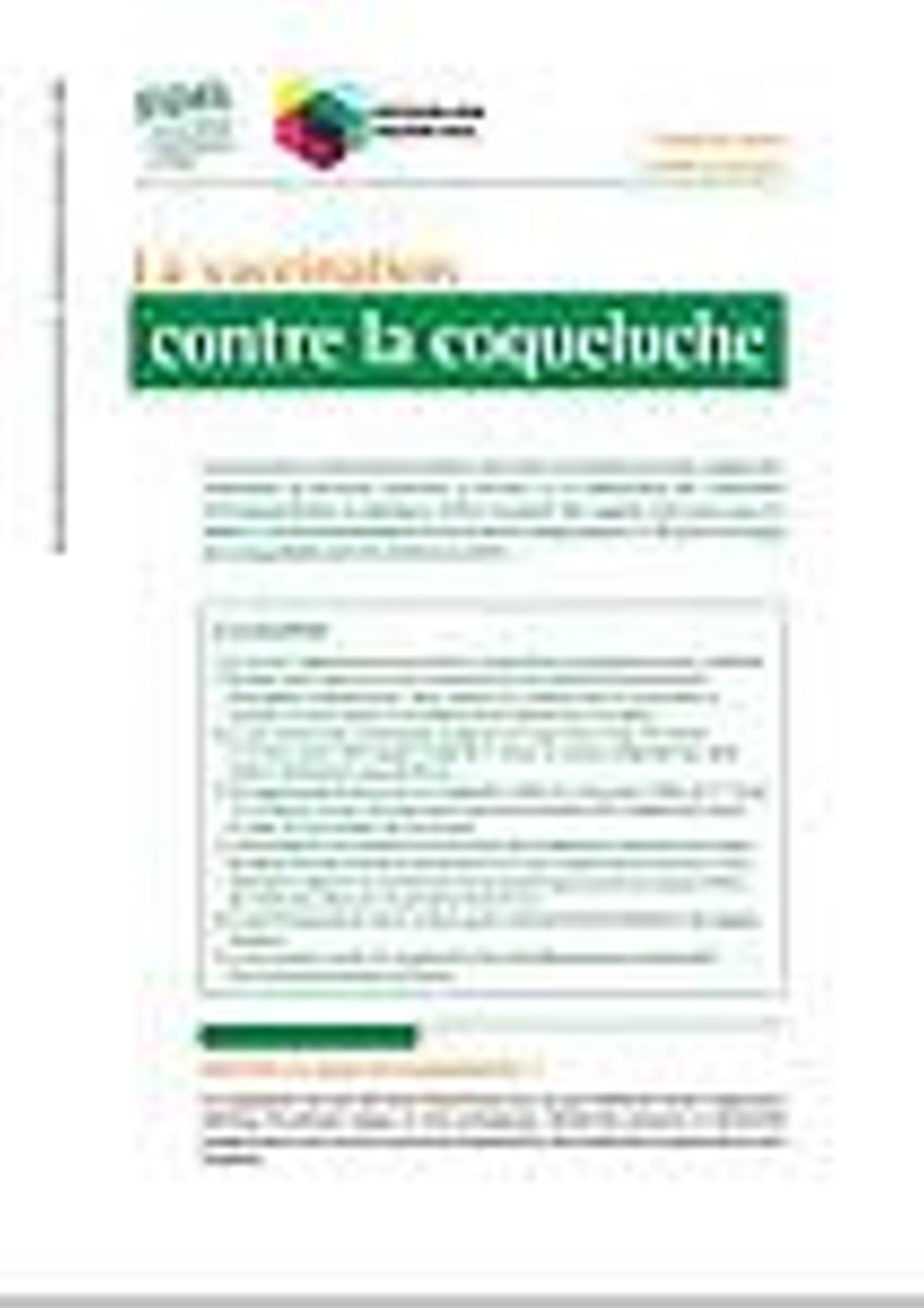 La Vaccination contre la coqueluche - RPVP mars 2016
