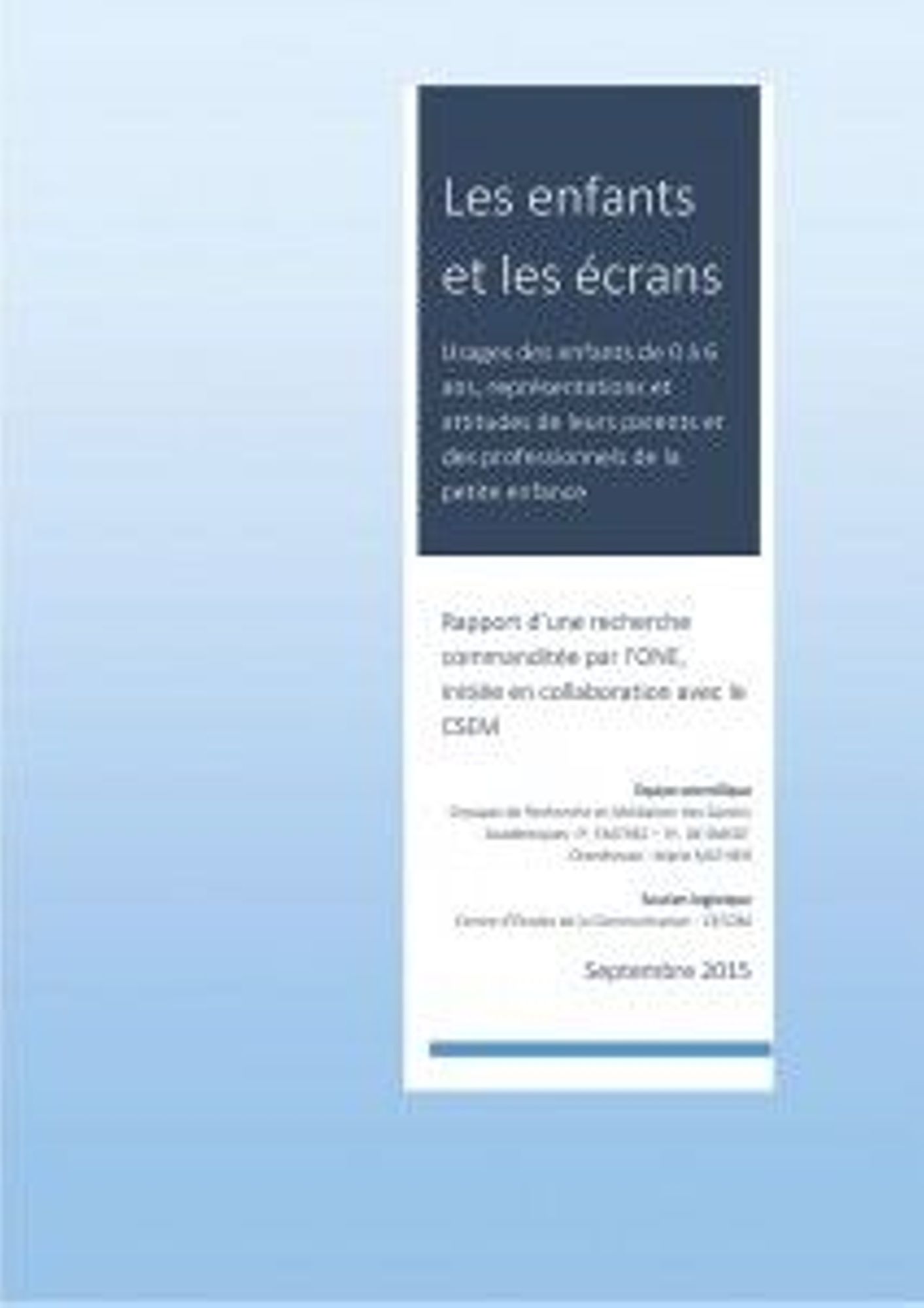 L'ONE s'est associé au CSEM afin de mener une enquête sur l'usage des écrans numériques chez les jeunes enfants. Celle-ci a pour objectif de soutenir la réflexion des parents et des professionnels et de les outiller afin qu'ils développent un regard critique sur la place et les rôles des technologies de l'information et de la communication dans l'éducation des enfants. Les recommandations issues de l'étude s'articulent autour de 5 axes: Identifier l'environnement de l'enfant, trouver l'équilibre, privilégier le dialogue, être positif et poser un cadre.