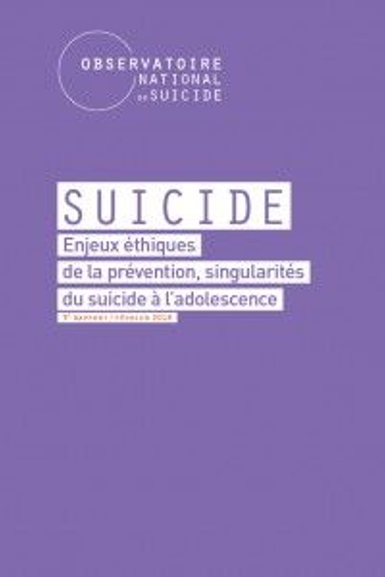 Ce troisième rapport, de l’Observatoire national du suicide, comprend deux dossiers thématiques approfondissant chacun une des caractéristiques sensibles de la prévention du suicide, qui compliquent son approche: la nécessité de prendre en compte les enjeux éthiques forts que soulève la prévention du suicide et une seconde réflexion aborde les comportements suicidaires chez les jeunes, leurs singularités ainsi que les actions efficaces pour les prévenir. Enfin, un état de l’avancement des travaux de l’Observatoire est également présenté.