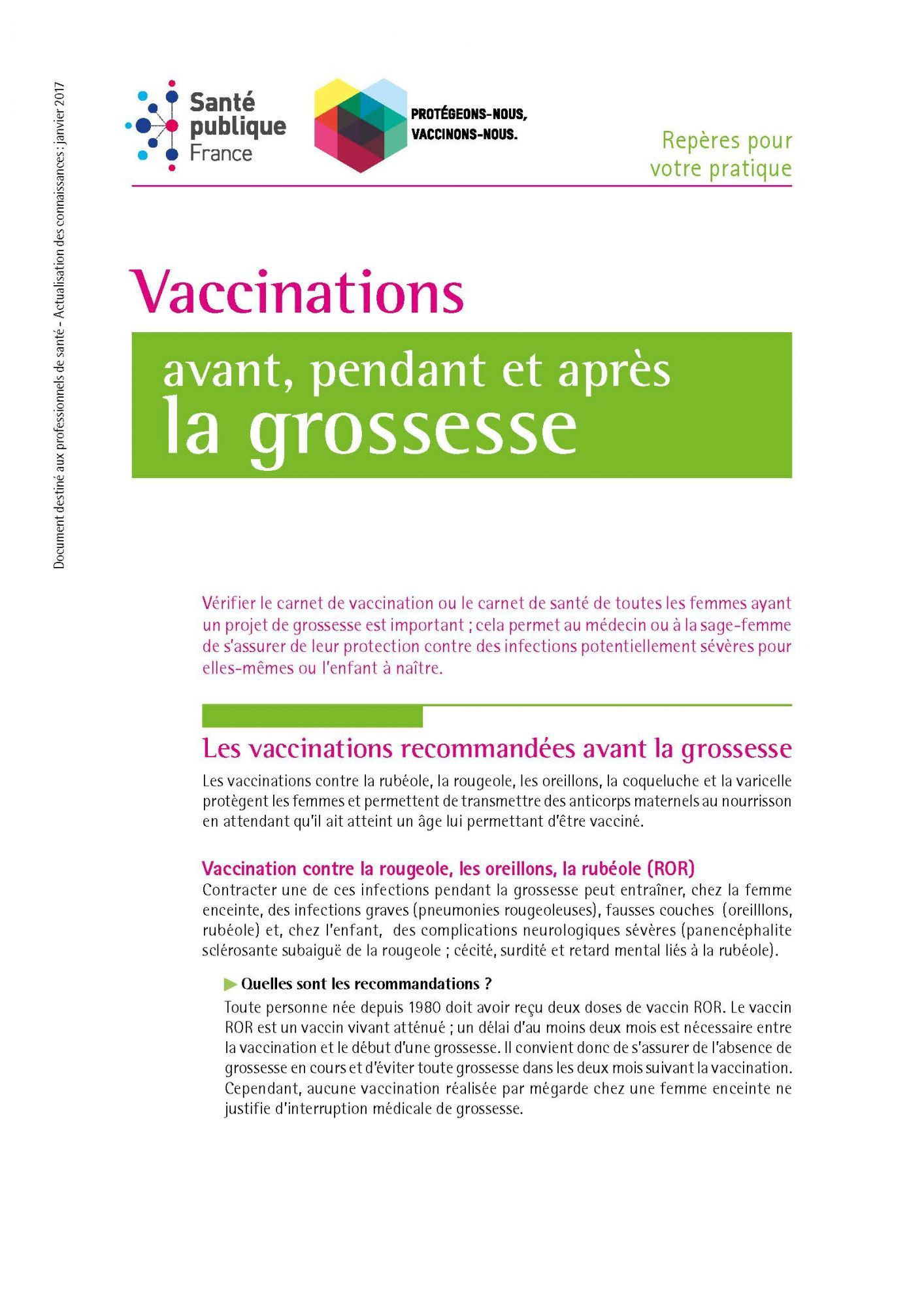 Vaccinations avant, pendant et après la grossesse - RPVP 2017