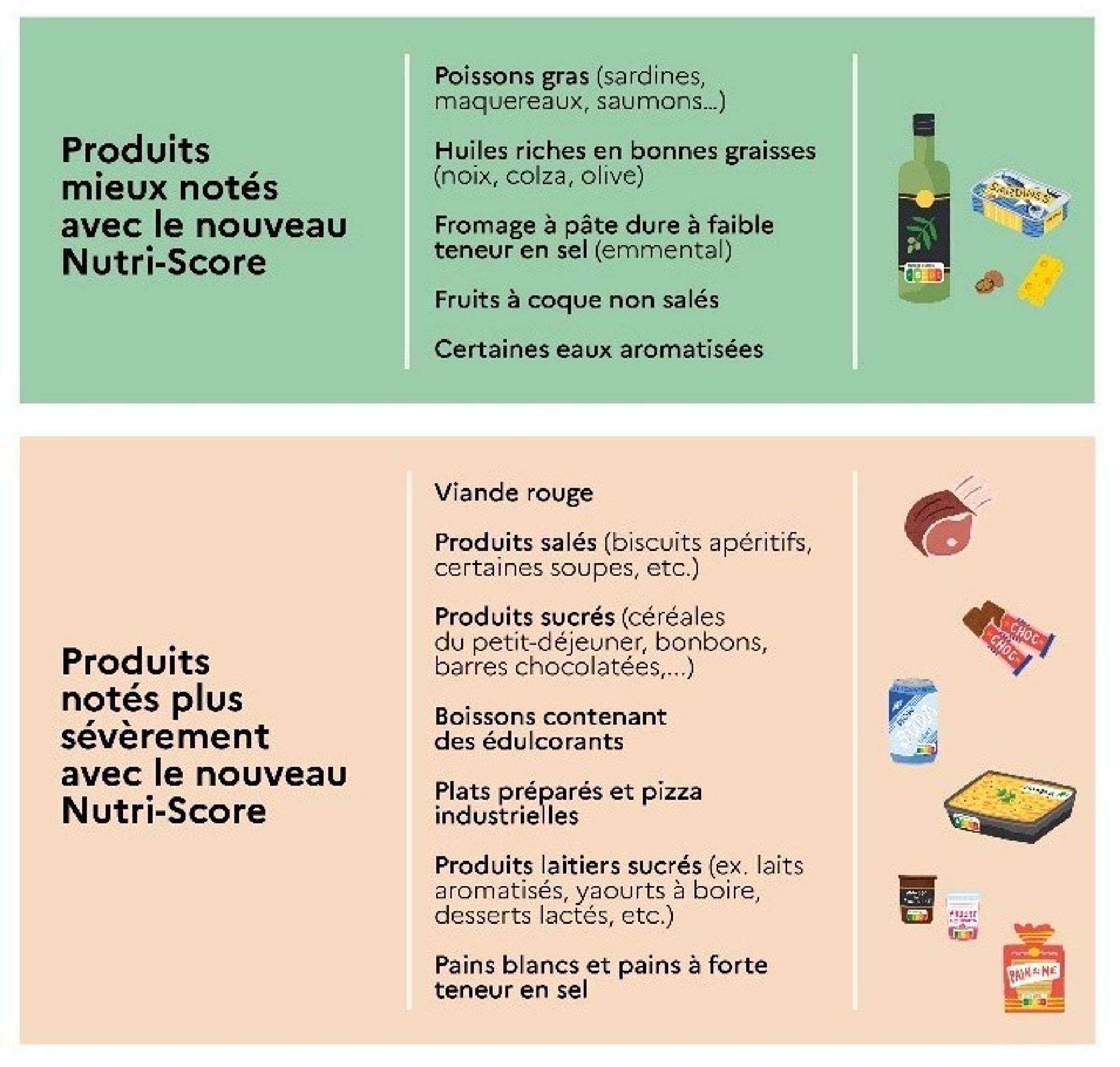 Entre 30 et 40 % des produits vont voir leur score changer. Les principales modifications portent sur les catégories suivantes :