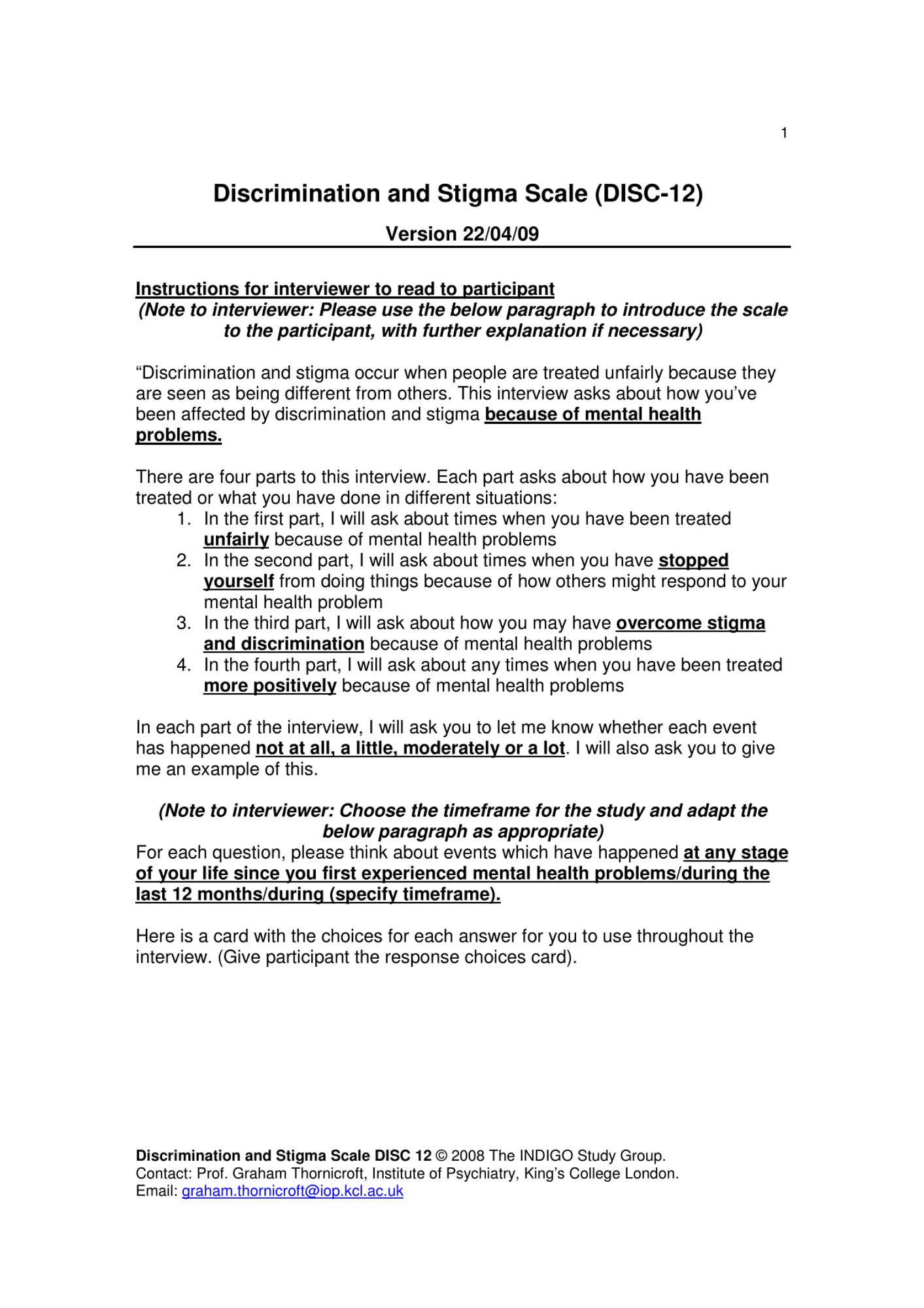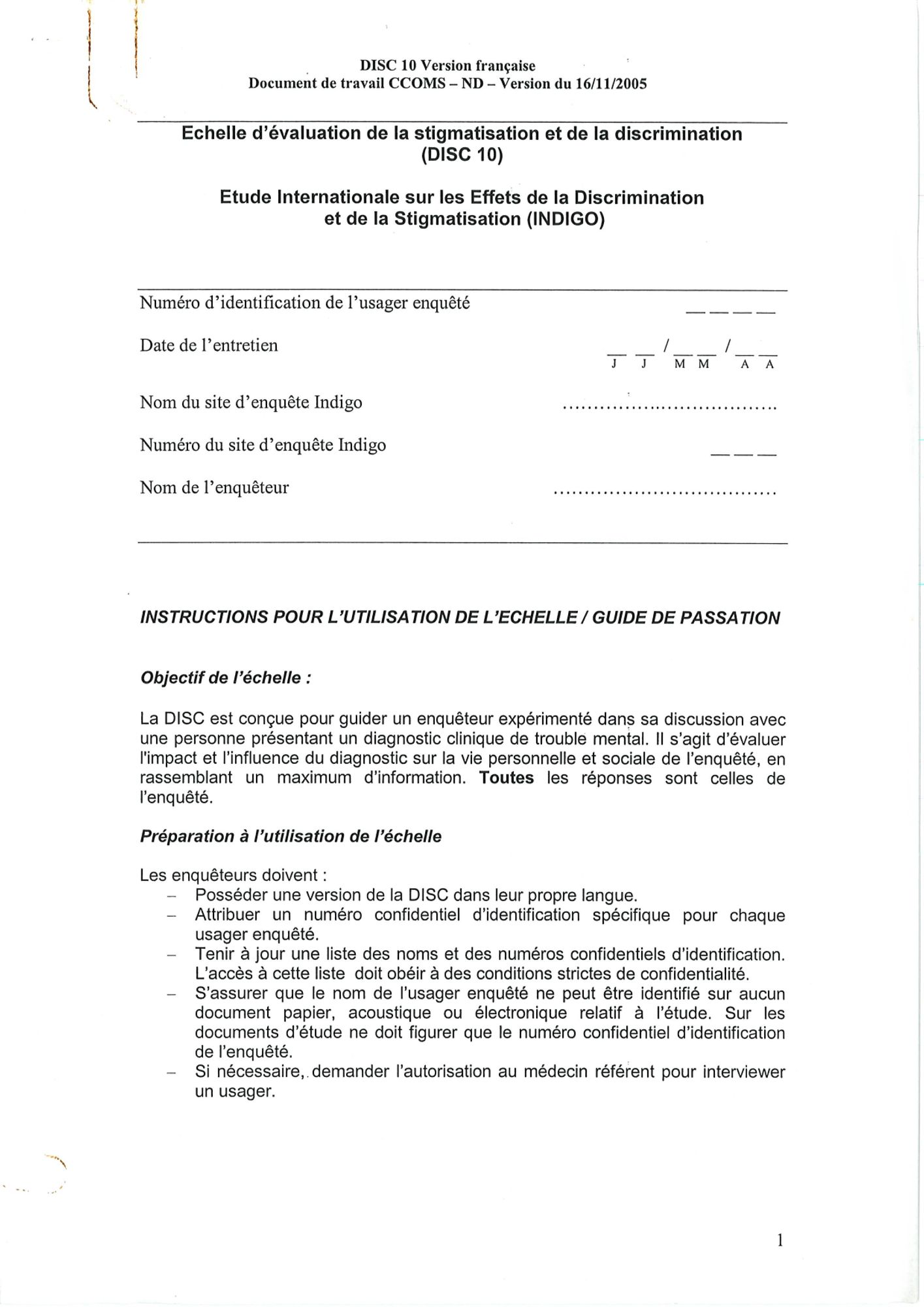 Le développement de la DISC répond au besoin de disposer d’un outil de mesure de la discrimination valide et fiable dans le cadre d’une recherche internationale.