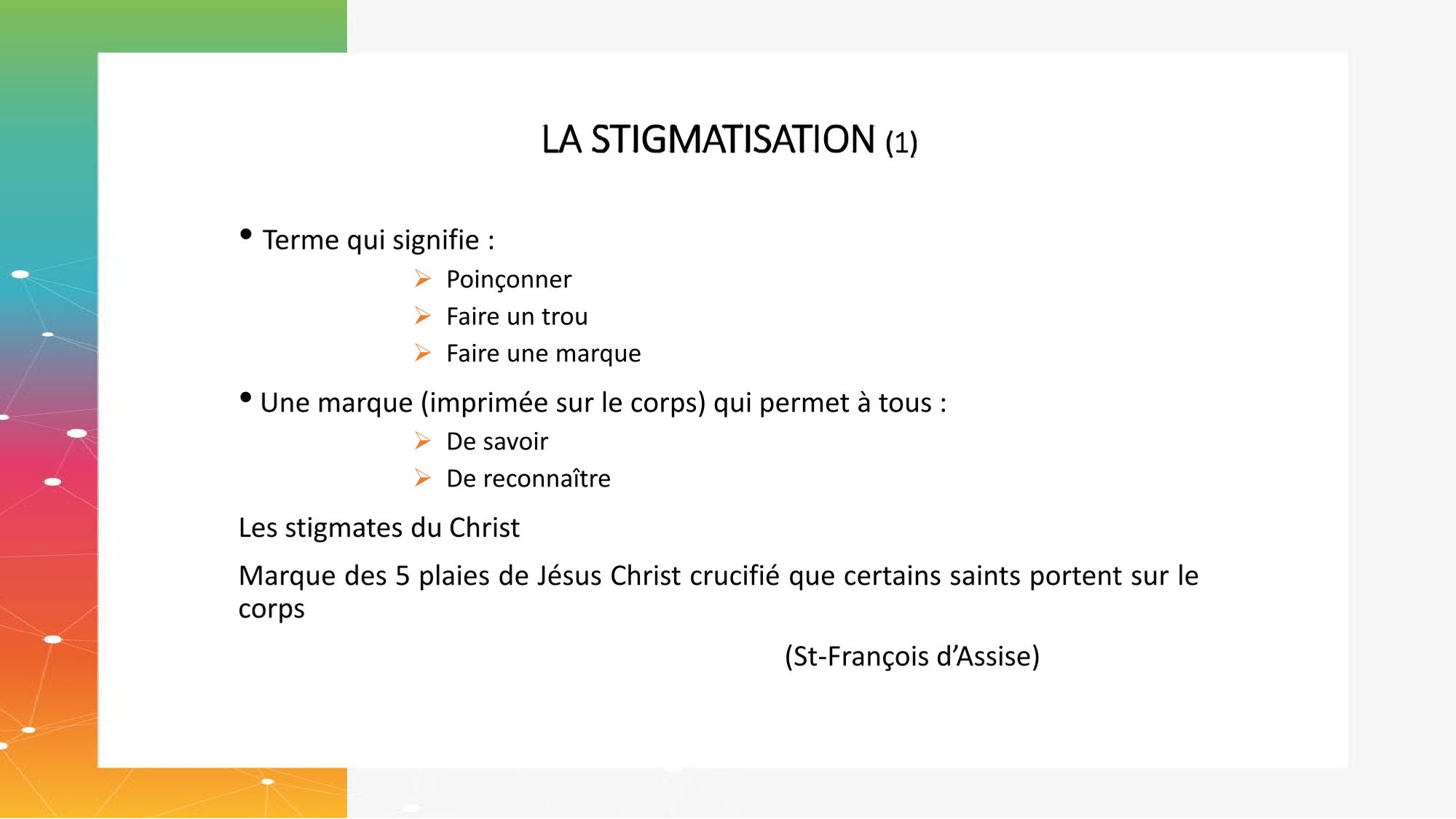 La stigmatisation consiste en l’action de « marquer de manière définitive le corps de quelqu’un afin de laisser une cicatrice distinctive ».